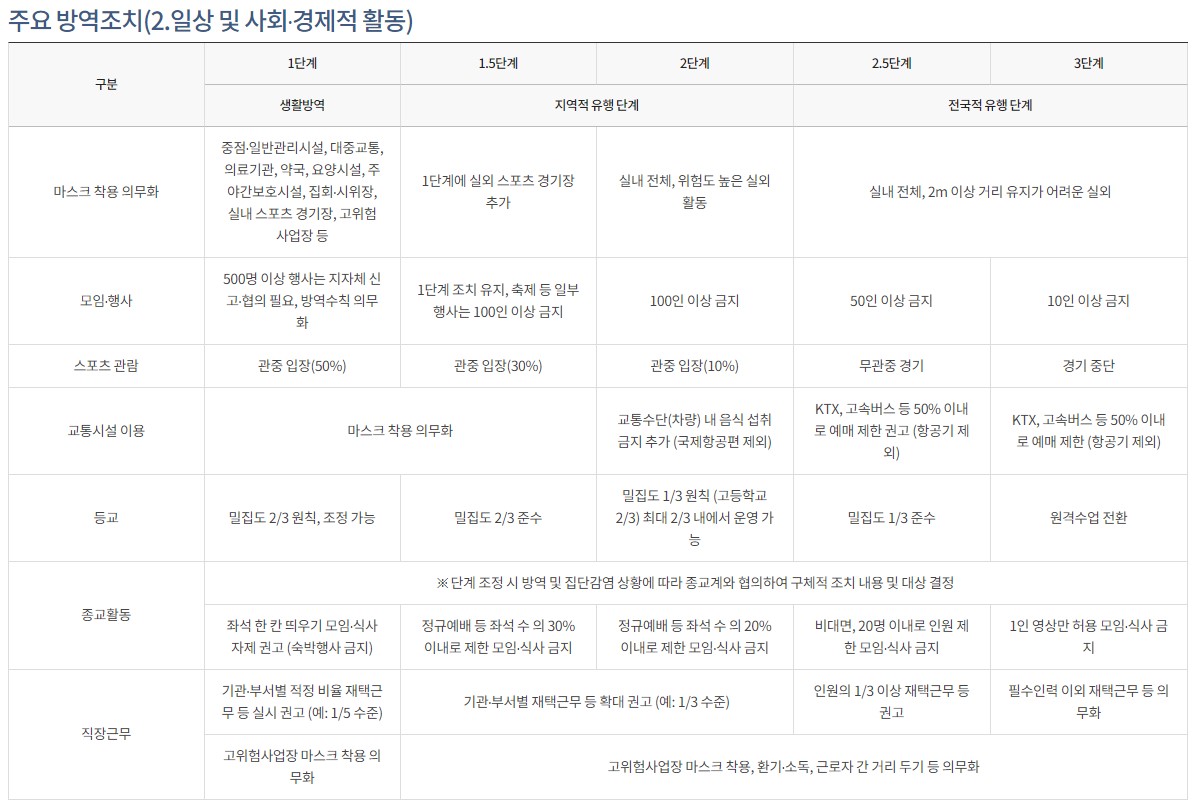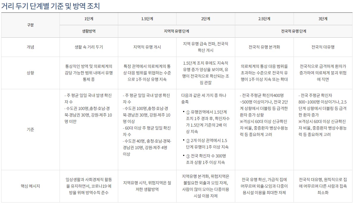 코로나바이러스감염증-19(COVID-19) 정부홈페이지의 사회적거리두기 안내